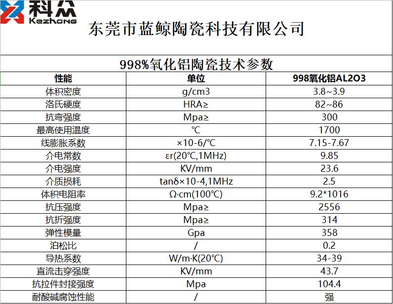 99.8%氧化鋁陶瓷技術參數
