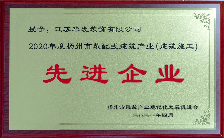 大會對2020年度揚州市建筑產業現代化先進企業、優秀項目和先進個人進行了表彰。公司2020年度揚州市裝配式建筑產業“先進企業”稱號,張春林獲“先進個人”表彰。