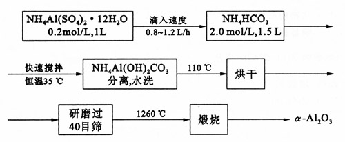 口-A12 03粉末的制備是NH4 HCO,與NH4 Al (S04)2.12HzO合成NH4 AI(OH):CO。,然后經(jīng)1260℃煅燒轉(zhuǎn)化成口-Al20。其工藝流程如下: